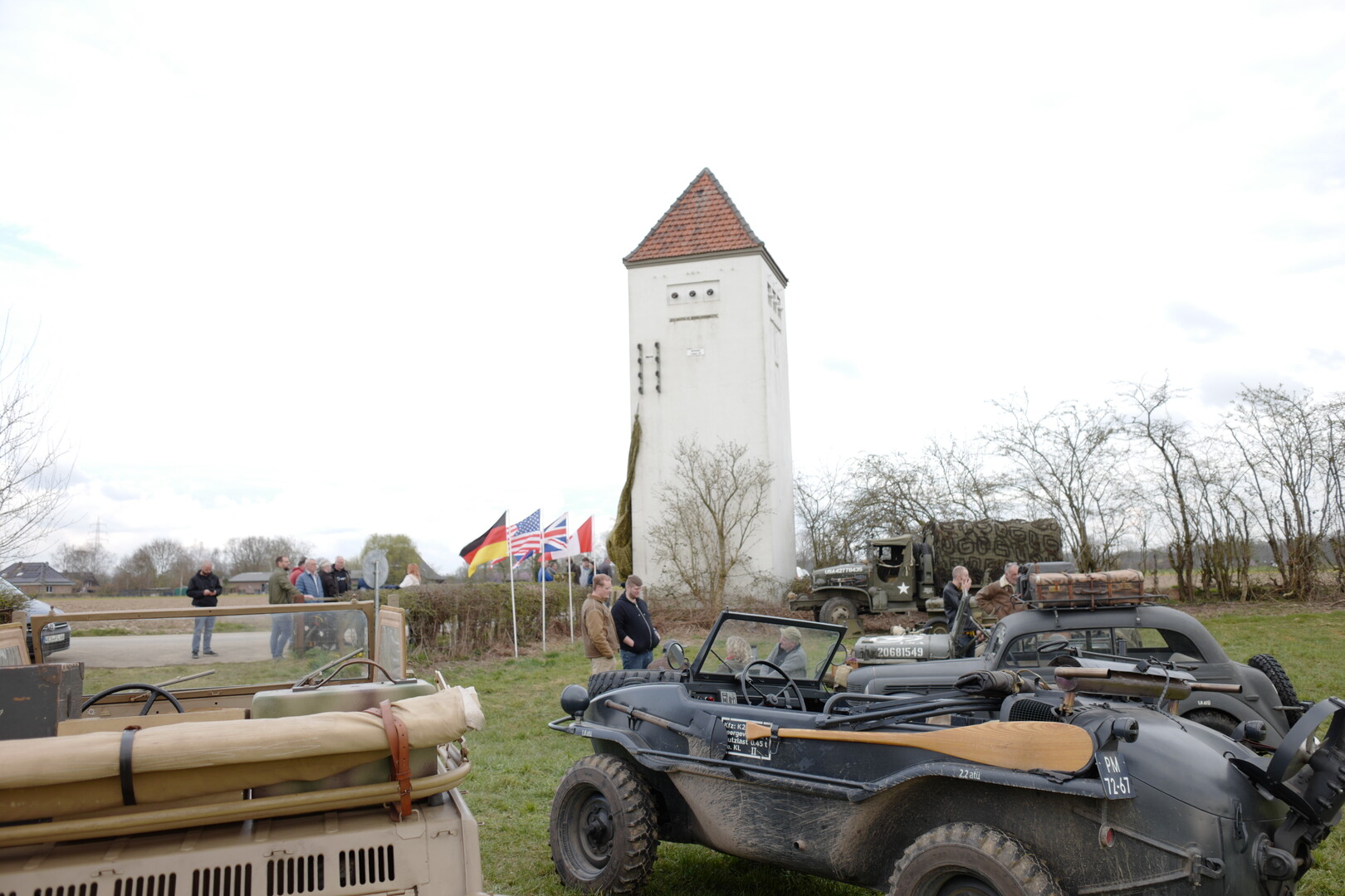 Anlässlich der Veranstaltung zum bevorstehenden Jahrestag der Luftlandung werden am Museumsturm auch einige historische Militärfahrzeuge präsentiert.