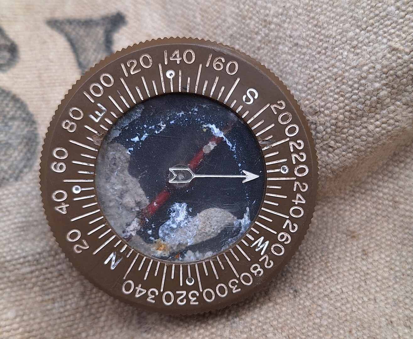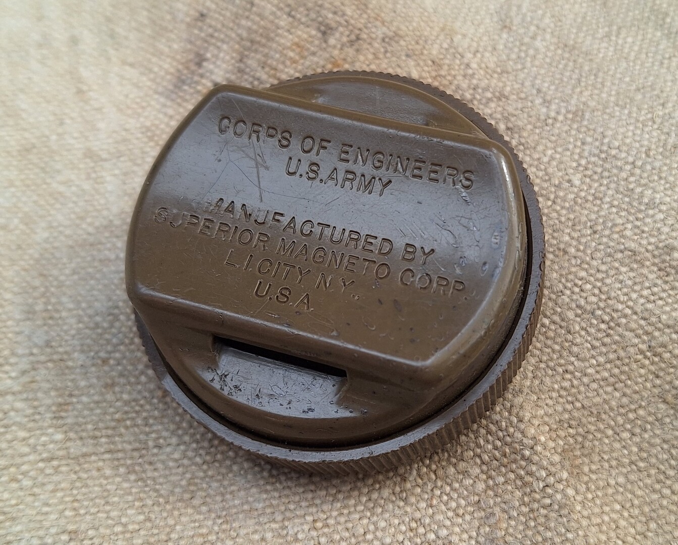 Solche einfachen Kompasse wurden in erster Linie an Mannschaften und Unteroffiziere ausgegeben. Der Kompass der Firma Superior Magneto war aus Kunststoff hergestellt, die Kompassnadel war in Flüssigkeit gelagert. Das hier abgebildete Objekt ist ein Originalstück der US-Luftlandetruppen, die am 24. März 1945 bei Diersfordt landeten. Das Lederarmband ist eine Replika, die nachträglich hinzugefügt wurde.