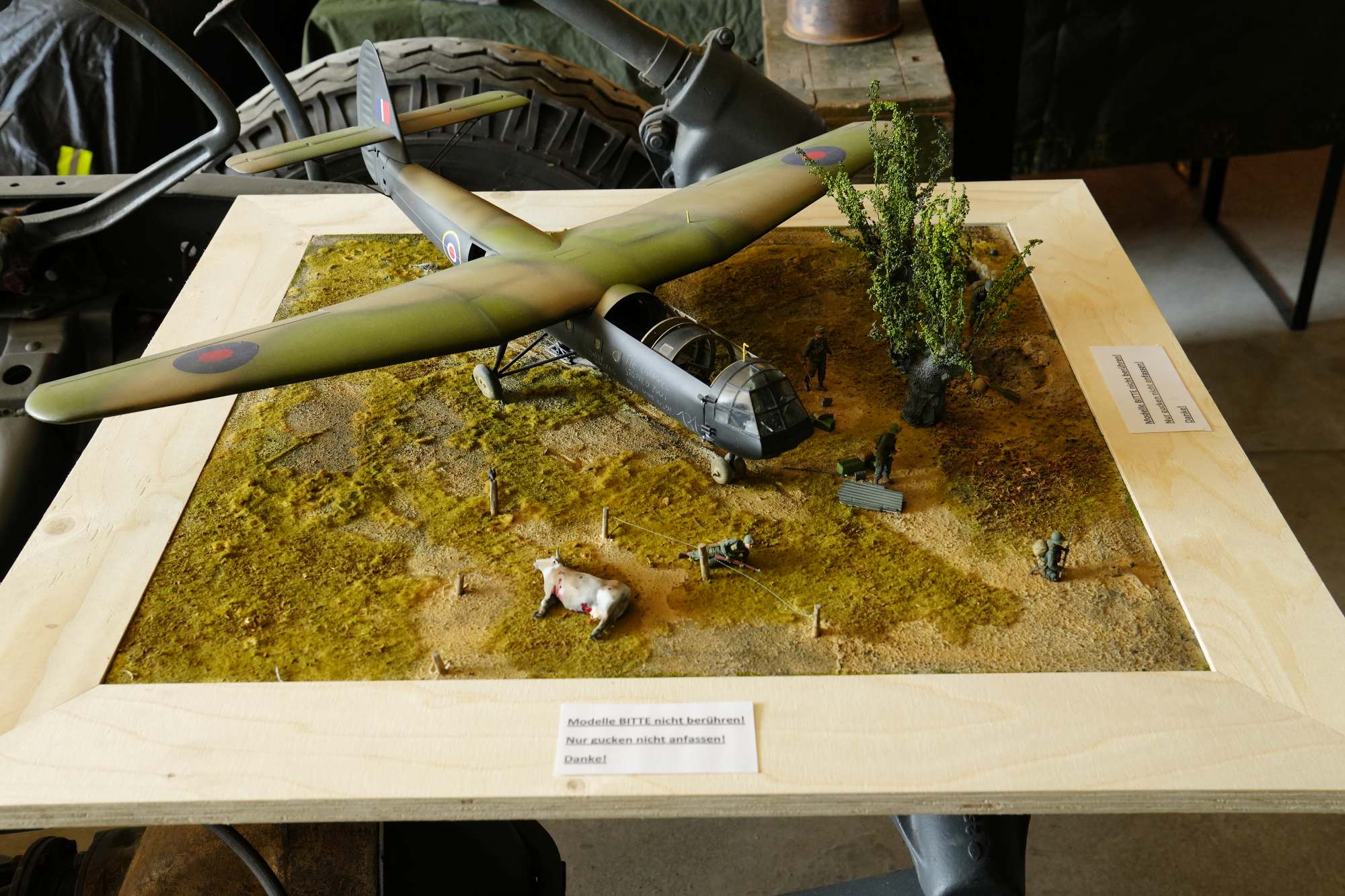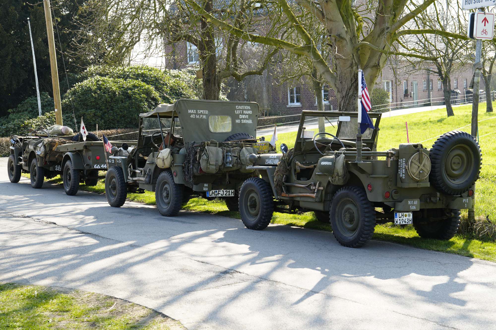 Wie auch im letzten Jahr fand in und um den Liberation Tower in den Feldern von Hamminkeln und auf dem Hof am Horster Weg 11 eine Ausstellung mit Relikten aus den Tagen um den 24. März 1945 statt. Damals landeten hier ca. 20.000 Alliierte mit Fallschirmen und Lastenseglern.
